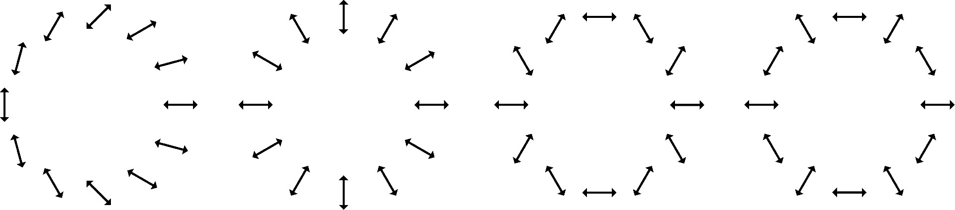 當入射光為線偏振光時,渦旋波片能夠產(chǎn)生矢量偏振光束,即光束橫截面上每一點的偏振方向呈現(xiàn)為非均勻分布的線偏振光束。當使用m=1渦旋波片時,有兩種較為特殊的情況:若入射線偏振光的偏振方向平行于m=1渦旋波片的0 °快軸,則出射光束為徑向偏振光束,即光束橫截面上每一點的線偏振方向均與徑向平行;若入射線偏振光的偏振方向垂直于m=1渦旋波片的0 °快軸,則出射光束為角向偏振光束,即光束橫截面上每一點的線偏振方向均與徑向垂直。