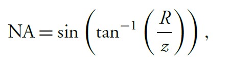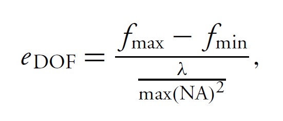 透鏡是一種光學(xué)元件,可將入射準(zhǔn)直光聚焦成焦點(diǎn)。在透鏡法線上測(cè)量到的光斑保持緊密聚焦的距離范圍通常稱為焦深(DOF)。焦深(DOF)與焦斑尺寸 W 之間存在直接關(guān)系,其公式為