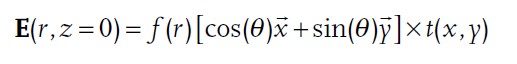 其中,f (r) = r /σ0 exp(-r202 )表示拉蓋爾-高斯(LG)函數。這里,σ0 表示高斯寬度,r = (x2 + y2)1/2。在這種情況下,我們通過求解上述準軸向亥姆霍茲方程來重復渦流光束的聚焦現象,數值結果如圖 3d 所示。對于矢量光束光源,我們考慮求解矢量波方程
